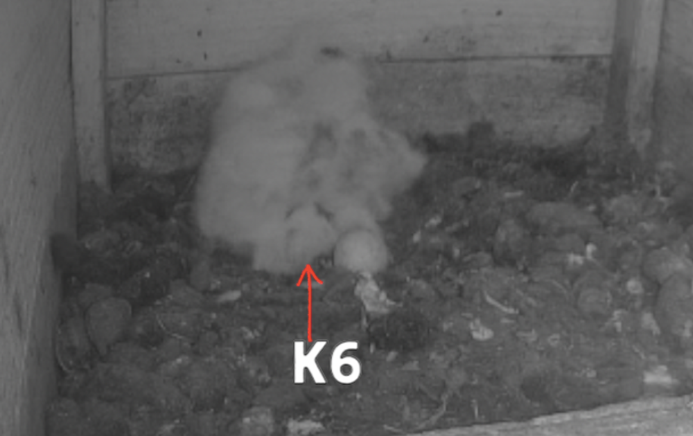 En toen ineens bleek het 6e kuiken toch geboren te zijn. Met terugwerkende kracht hebben we gezocht in de beelden, en ja hoor, het kuiken is gevonden op 28 mei 2021...en ook de eierschaal! Maar wanneer K6 nu écht geboren is? Helaas, daar komen we waarschijnlijk niet met zekerheid achter. Ik gok ergens in de nacht tussen 1:50 en 4.27. K6 is niet voor niets een Mystery Guest...