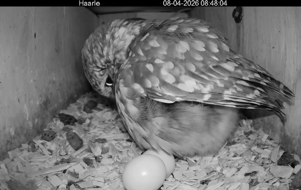 Het leggen van de eieren in Haarle op 6 april om 4:49 uur en op 8 april om 8:28 uur.