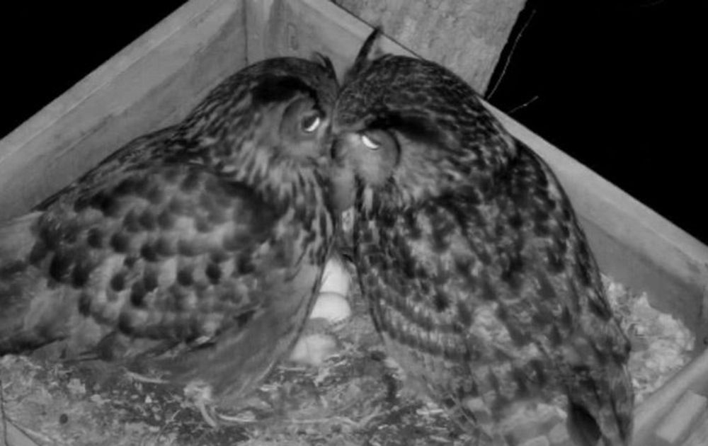 21:43 uur brengt M een vette rat naar de nestkist. V brengt deze vervolgens weg.