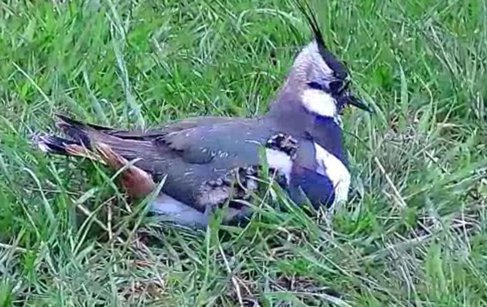 Vanmorgen vroeg was al te zien dat de Kieviten onrustig op het nest zaten. En tussen ca 9:30 en 11:00 uur kwamen de kuikens uit hun ei.