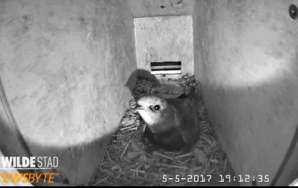 Aan het begin van de avond, rond 19:14 is er een tweede gierzwaluw die de nestkast in Amsterdam bezoekt na het bliksembezoek van een andere gierzwaluw op 29 april. Na het binnenvliegen is het tijd om op adem te komen, maar voorál tijd om de veren eens goed te poetsen... Nu maar afwachten of de kast ook als goede overnachtingsplek wordt goedgekeurd...