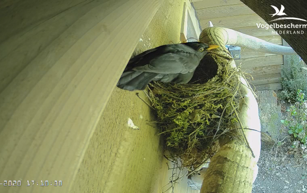Gelukkig zijn (onze) merels sinds vanochtend druk in de weer om te starten met een nieuw nestje.