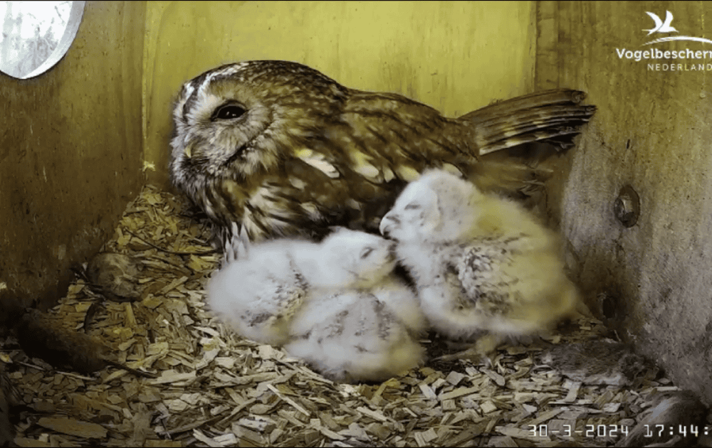 De kuikens krijgen nieuwe vaardigheden op de weg naar zelfstandigheid: staan/lopen en goed kijken.