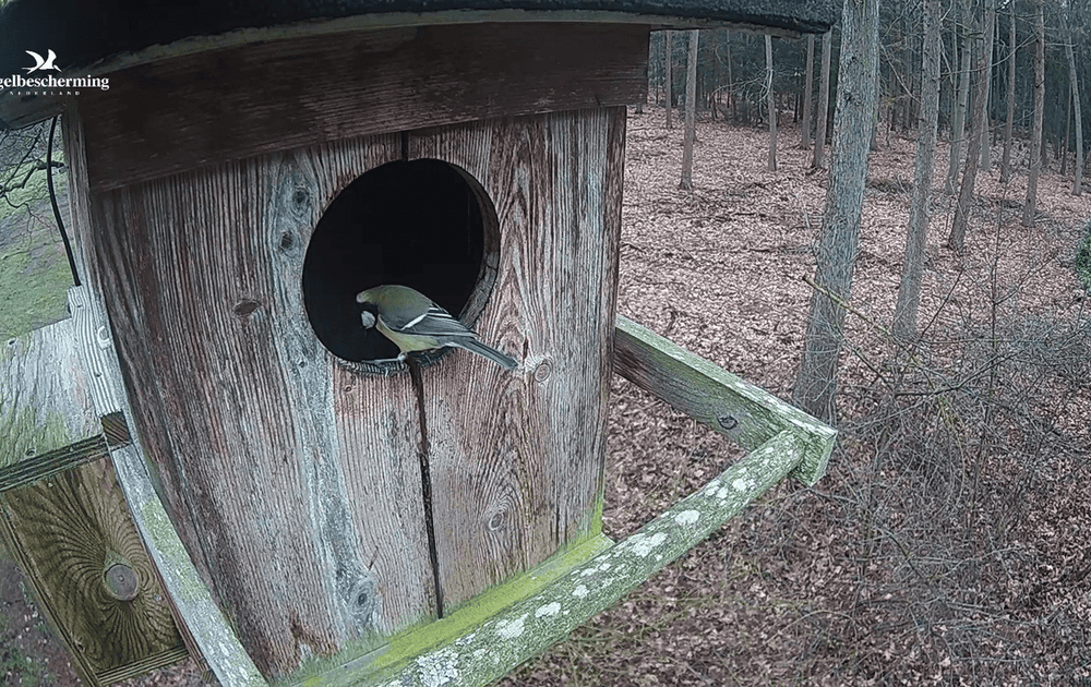 De kast heeft een grote aantrekkingskracht op meerdere koolmeesjes. Ze worden ook steeds brutaler.