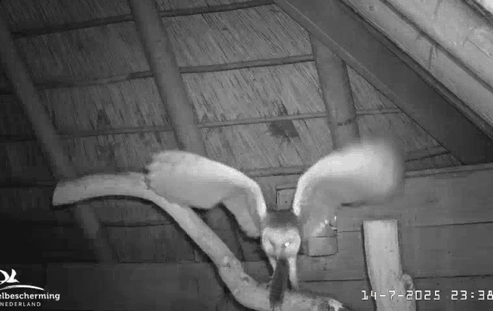Het einde van het seizoen nadert met rasse schreden, nog maar drie jonge kerkuilen in en rond de hooiberg.