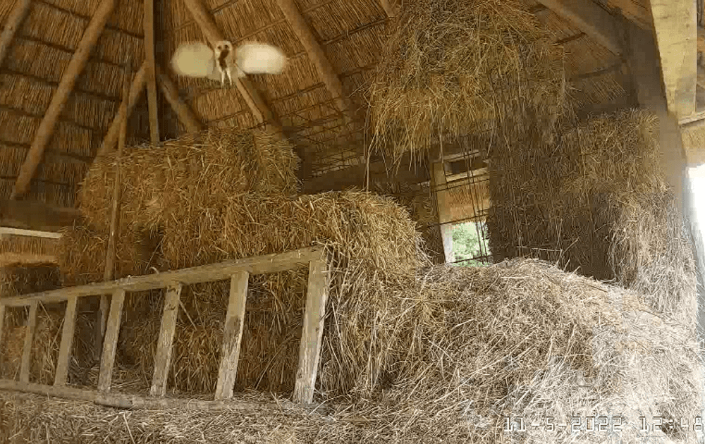 Unieke beelden, dit zagen we niet eerder: man nogmaals naar de hooiberg en terug met een muis.