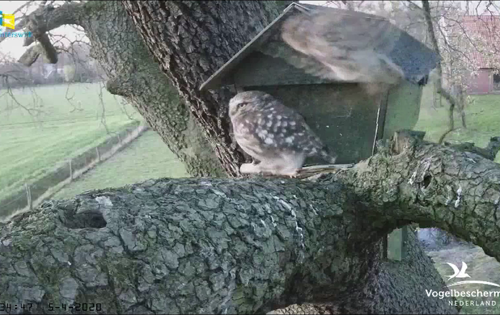 Vrouw is steenuil is nog niet echt aan het broeden en paringen zijn er nog genoeg. Na het laatste ei gaat vrouw steenuil echt broeden en paren man en vrouw niet echt meer.  Dus er is nog een ei te verwachten, maandag 6 april ergens tussen 11 en 20 uur.
