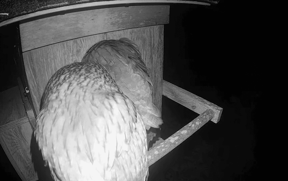 Vanmorgen was het wéér zover, Man bosuil ging de kast in maar of V het er helemaal mee eens was..?