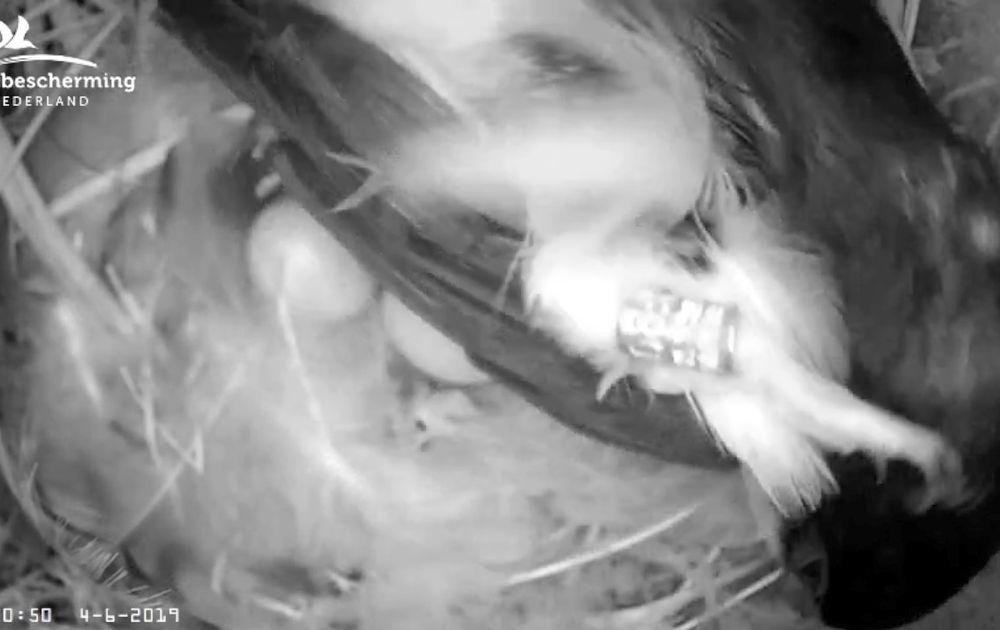 Vandaag was er een kort ongewenst bezoek in de kom. Na een korte stoeipartij krabt de huiszwaluw even achter de oren... en wat zien we dan...?! De veelbesproken ring dan eindelijk op video.