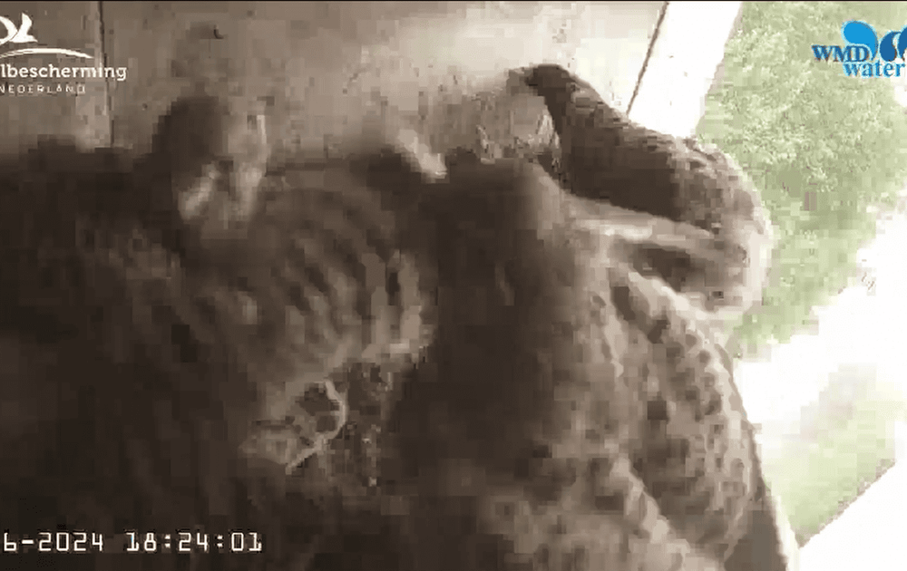 Op 4 juni om 18:24:28 vliegt in alle hectiek het tweede jonge torenvalkje uit, zie rechtsonderin op het einde van het clipje.