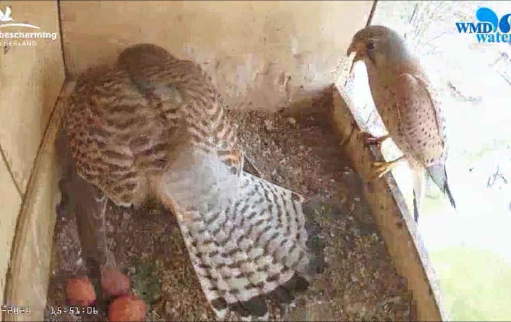 Het gaat supergoed bij de torenvalken, er wordt gepaard, gegeten en.. er zijn nog meer eieren gelegd!