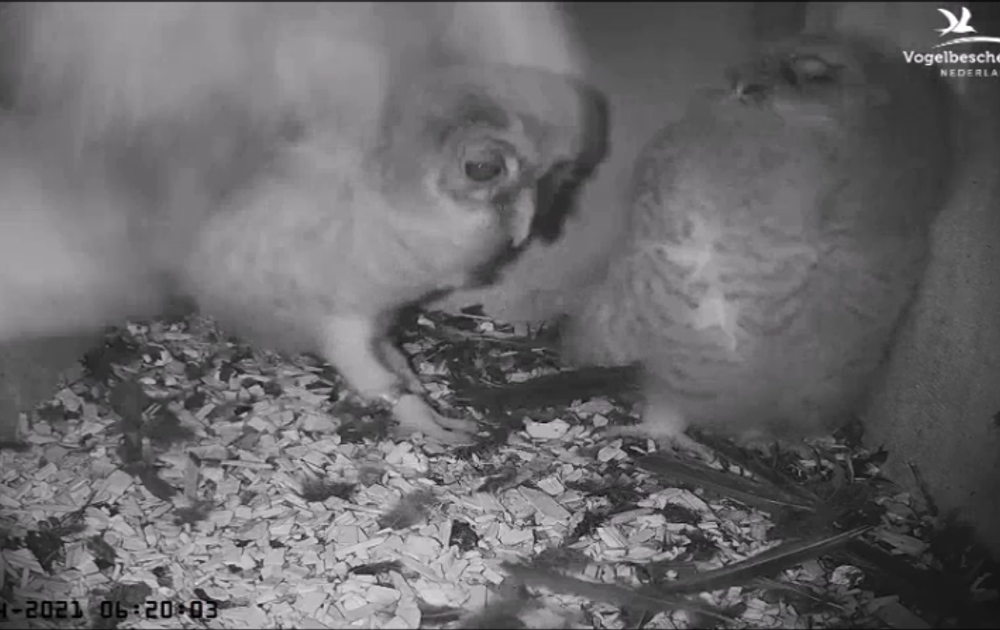 Vanochtend volop actie: ochtendgymnastiek. Fladderen en springen. Oefenen voor later. Let ook eens op het gebruik van de klauwtjes als het springende kuiken vlak bij de camera staat. En ook een beetje nostalgie: Ochtendgymnastiek tussen 1945 en 1975 via de radio verzorgd door Ab Goubitz