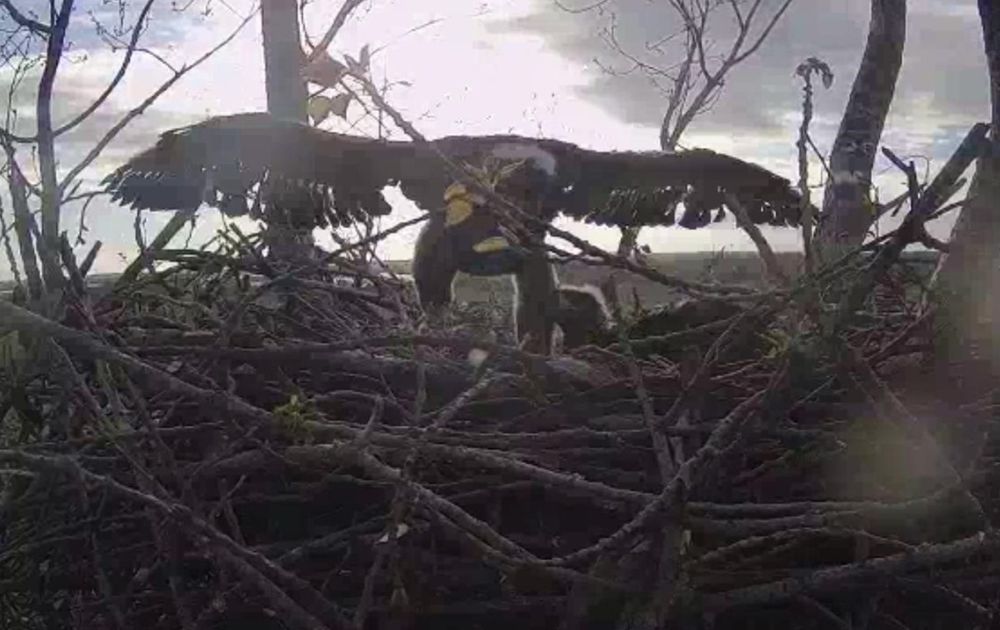 Het zijn nu nog slappe vaatdoeken die komisch heen en weer flapperen, maar dit worden enorm sterke vleugels waar de jonge zeearenden uiteindelijk net zo goed mee kunnen vliegen als hun ouders.