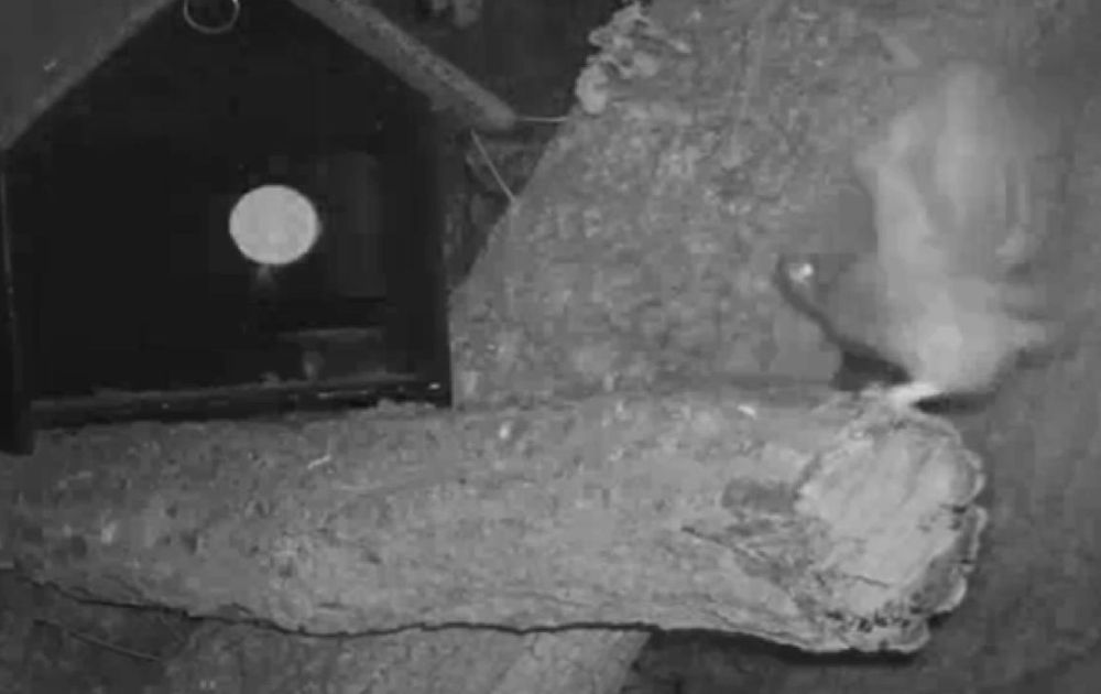Er staat wat minder wind en één kuiken waagt zich echt op de tak, oefent, doet zijn behoefte en krijgt zijn droogje.