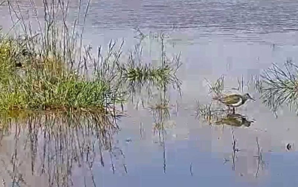 Misschien was hij hier al eerder, maar vanmiddag viel hij dan toch echt op: De Oeverloper, een kleine steltloper, op de rode lijst (bedreigde vogels).