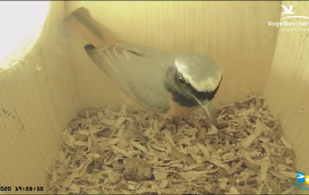 Na een, wat we dachten, goede start van de nestbouw volgde er twee hele dagen van radio stilte. We waren de wanhoop nabij, tot vanmorgen Man opeens weer in de kast verscheen en Vrouw ook heel even aan de opening kwam.