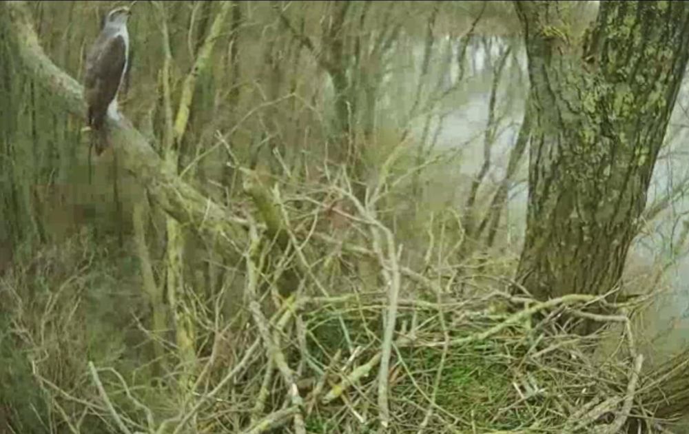 Het is helaas erg rustig voor de camera de laatste dagen. Maar misschien dat deze nieuwe bezoeker een verandering teweeg brengt? Deze onbekende havik bleef ruim een uur op het nest zitten en werd uiteindelijk weggejaagd door een buizerd.