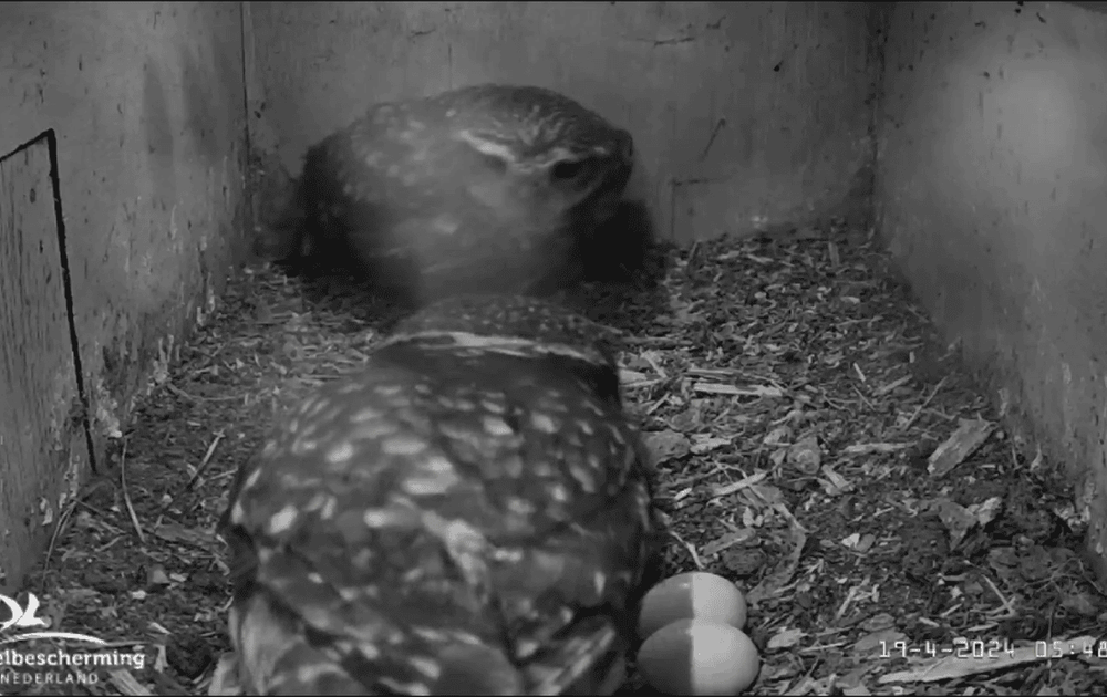 Lekker '"schuddelend" perst vrouw daarna de 5 eitjes weer tegen de broedvlek.