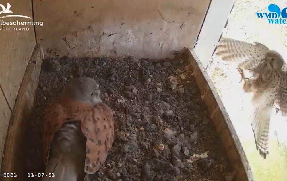 Het gedrag van de torenvalken zou je haast onderhandelen noemen. De vrouw tolereert de man steeds meer als hij even wil broeden. Zou de man dan toch door hebben hoe hij vrouw torenvalk zo ver kan krijgen even van de eitjes af te gaan? Een lekkere prooi valt goed in de smaak en blijkt een uitstekende onderhandel methode. Het lijkt bijna, prooien voor eieren..