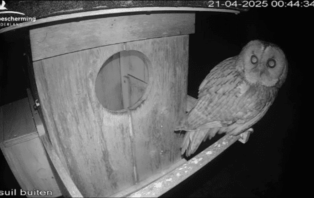 Net na middernacht schrikt man bosuil als hij bij de kast komt om een prooi(tje) af te leveren. Ook kort daarna, als hij weer met een prooi komt, is hij waakzaam en lijkt iets te zien wat hem niet zint.