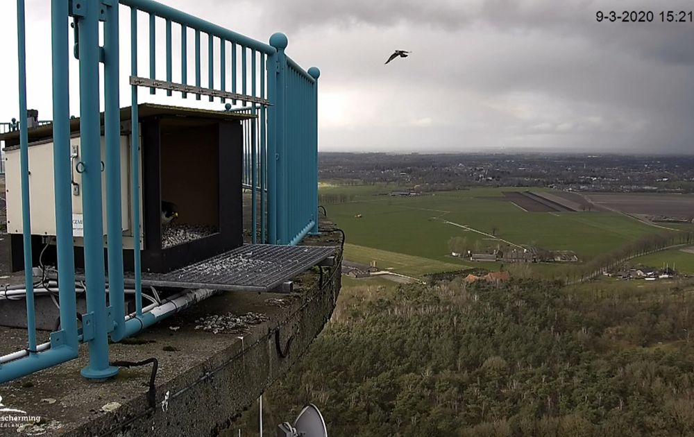 De hele middag was het onrustig. Op de camera's was geen contact te zien met een derde valk, het lijkt allemaal nog vrij onschuldig.