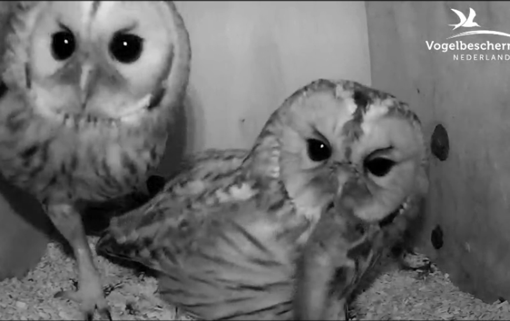 Voor de tweede keer die ochtend komt man bosuil met een muis. Omdat vrouw bosuil wat 'onhandig' ligt, komt hij -net als gisteren- helemaal binnen om de prooi aan te reiken.