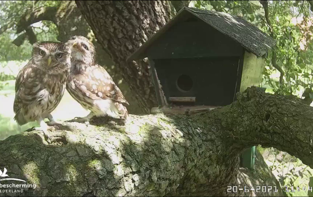 In de frisse buitenlucht gaan Vrouw en Man steenuil een stuk meer ontspannen met elkaar om dan in de nestkast.