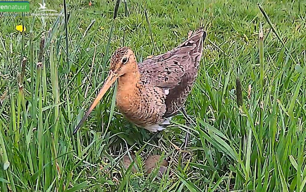 Nadat de camera is geplaatst vanmiddag, kijkt de Grutto eerst nog wel even 'de kat uit de bomen'.