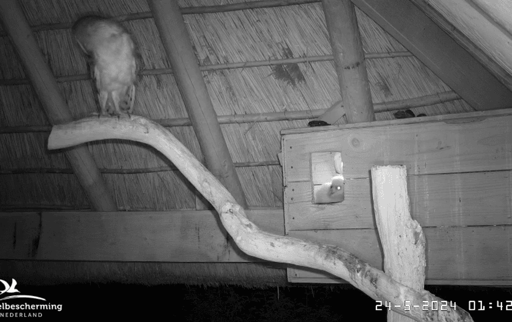 Zit je rustig te kijken of er al een muis in aantocht is, komt daar weer die vreemde uil op bezoek en daar zijn wij als kuikens niet blij mee.