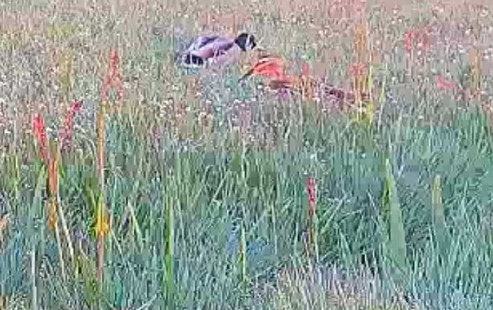 Vanmorgen bij de slootkant zagen we een koppel wilde eenden de wal opklauteren