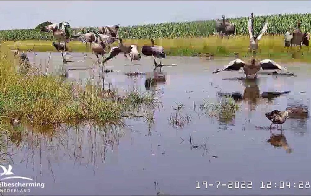 Ook de grauwe gans ging massaal op de wieken, fraai in beeld.