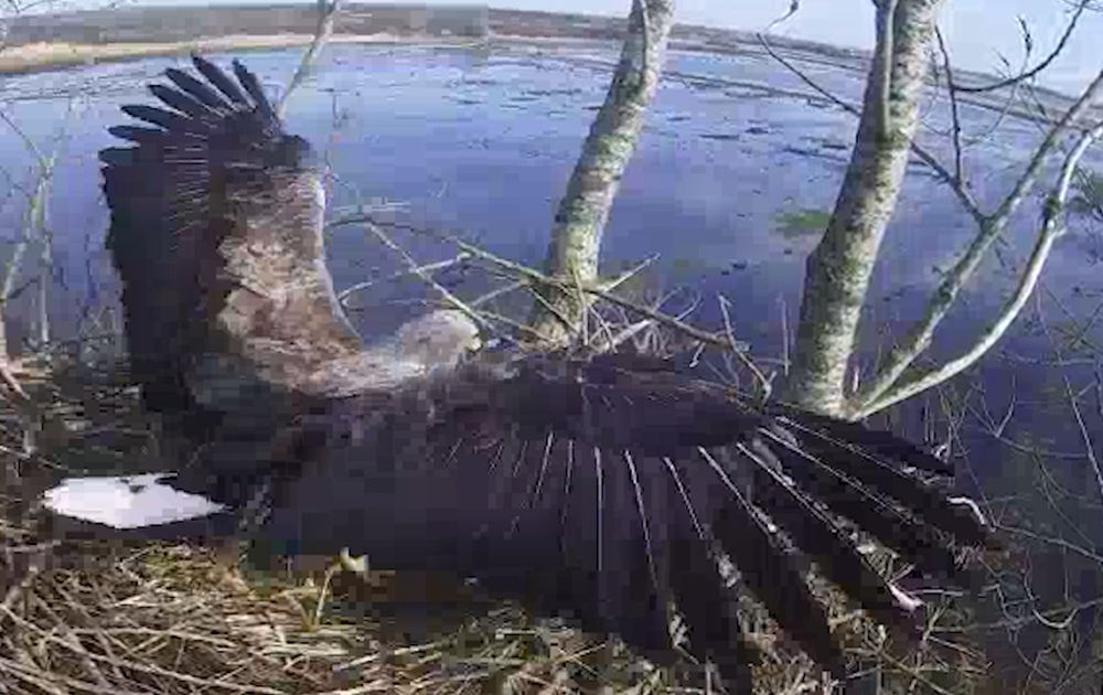 Op dit moment repareren ze hun nest, nadat het 7 maanden leegstond en door stormen losgeschud werd. Zie hoe indrukwekkend ze zijn als ze hun vleugels spreiden.