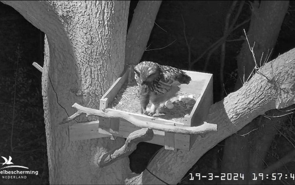 Na ruim anderhalve dag vindt V het welletjes en brengt de restprooi, die in de nestkist ligt, eindelijk weg. Opgeruimd staat netjes toch?