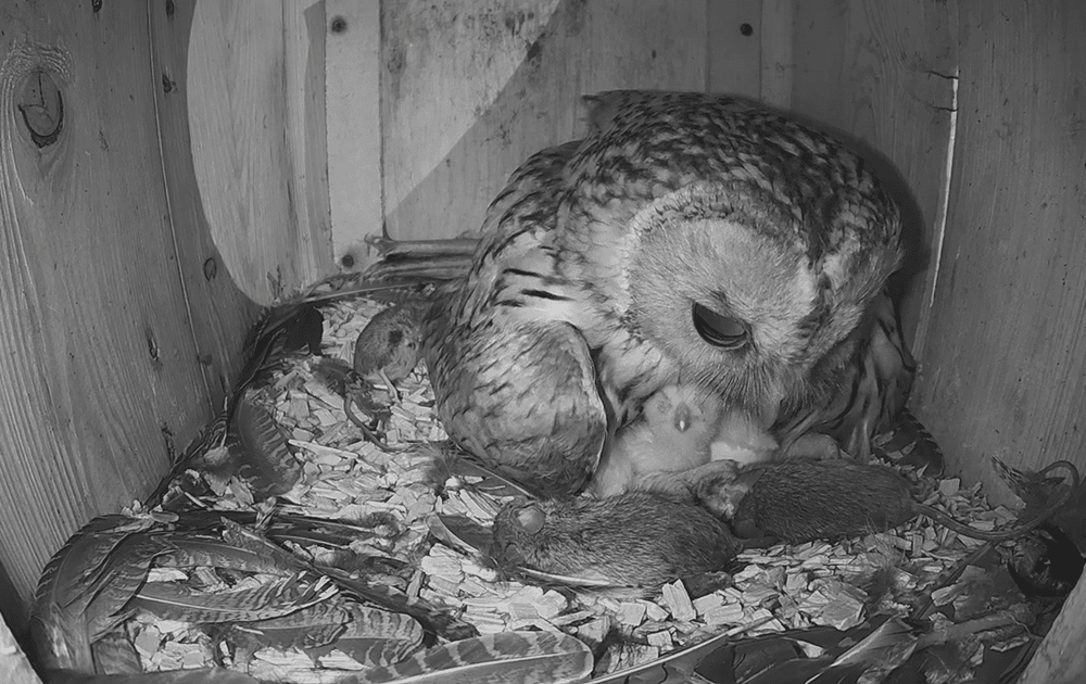 Het eerste kuiken wordt al gevoerd. Het is even wennen voor het kuiken maar als snel gaat het goed. Op naar de volgende kuikens..