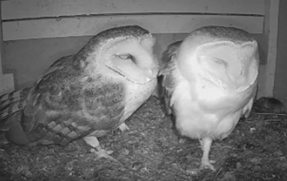 De uilen paren meerdere keren per dag, daarna is het tijd om elkaar te verzorgen.