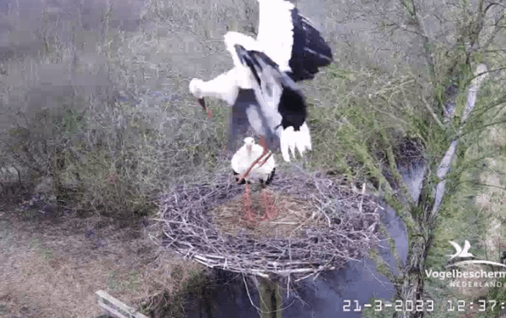 Weet U het nog, het plankje boven de webcam, ideaal uitzicht voor Ma en Pa. Maar denken ze ook aan eitjes of zijn ze er toch iets zenuwachtig voor.