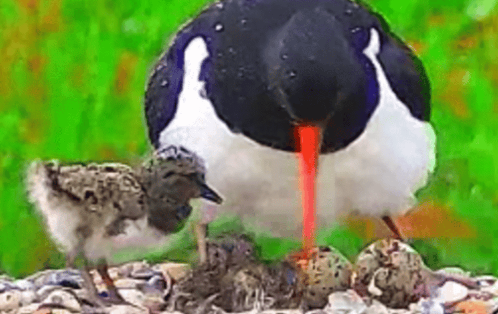 En ook de laatste twee eieren zijn gelukkig uitgekomen! De scholeksters gaan het druk krijgen. Inmiddels begint het nest al steeds krapper te worden voor alle kuikens