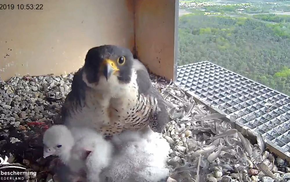 Vanmiddag na het geazamelijk voeren lukte het man niet om de kuikens onder zich te krijgen. Vrouw kwam er bij, en die pakte ze hardhandig aan.