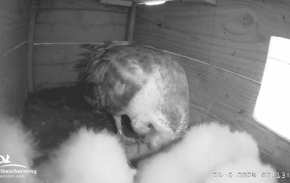 Veel regen en buien de afgelopen avond in de omgeving van de kerkuilenkast, dus ook beperkte aanvoer van prooien.