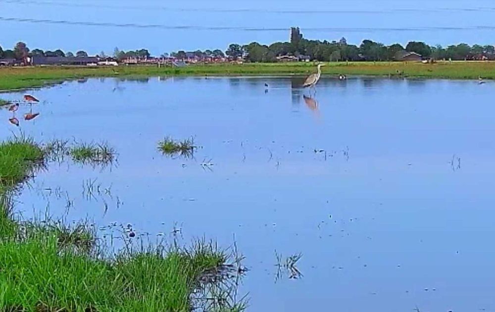 Om 21:22 uur gisteravond arriveert een Blauwe Reiger bij de plas.