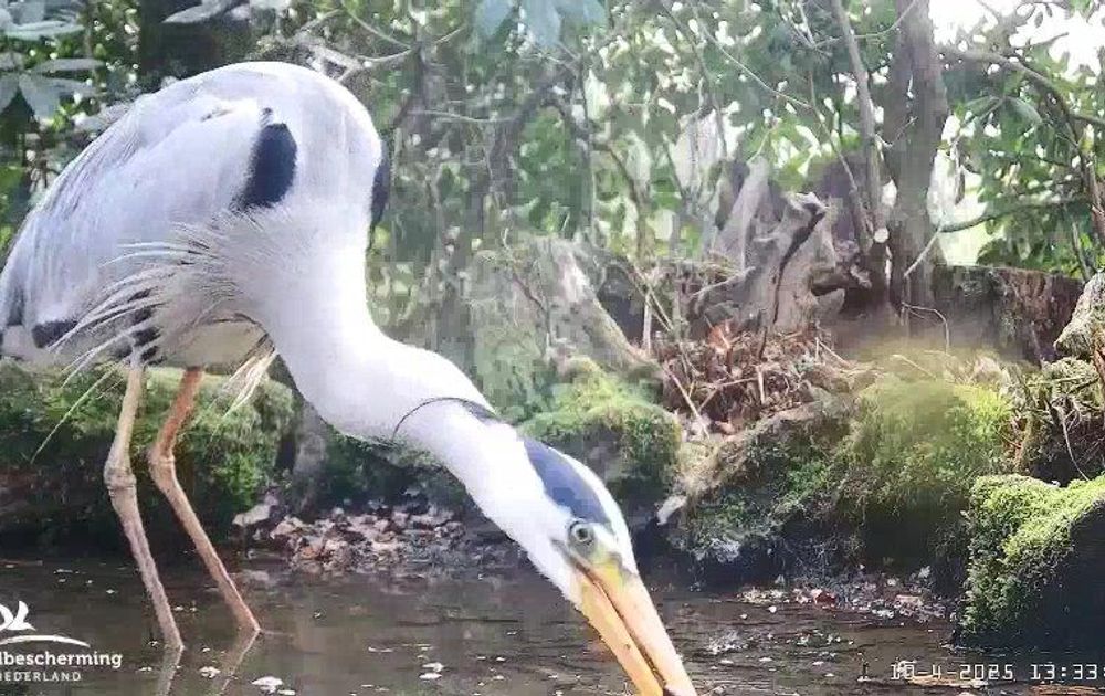 Op het ene moment is de kikker nog pret aan het maken en vlak daarna verschijnt de blauwe reiger bij de vijver.