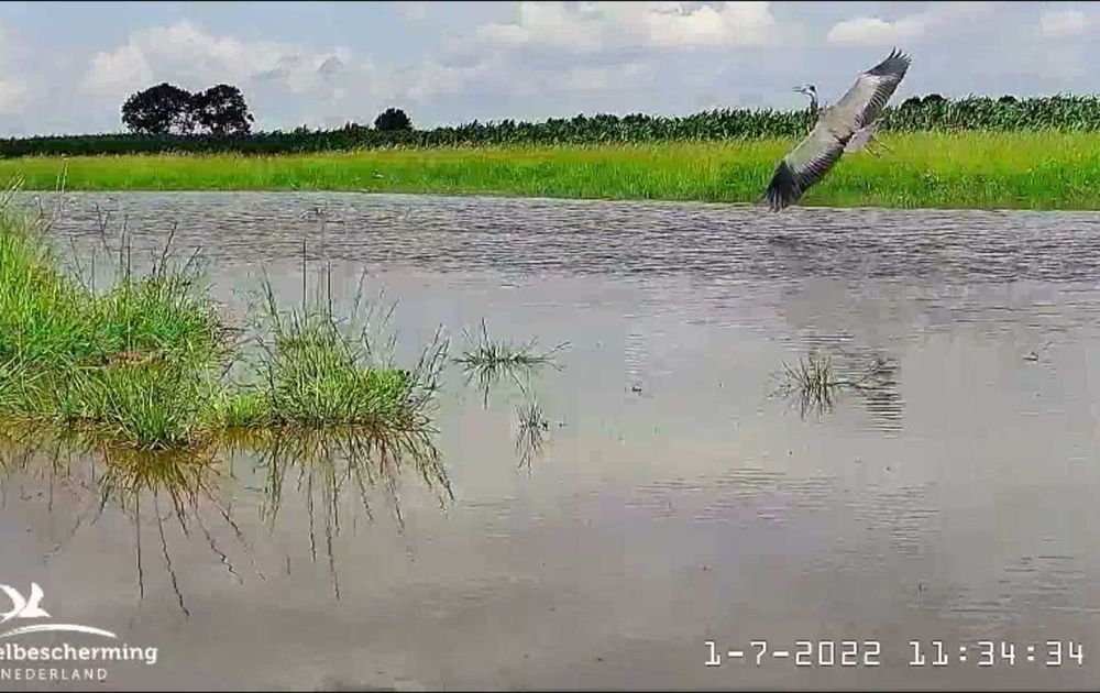 Vanmorgen was er een Blauwe Reiger bij de plas.