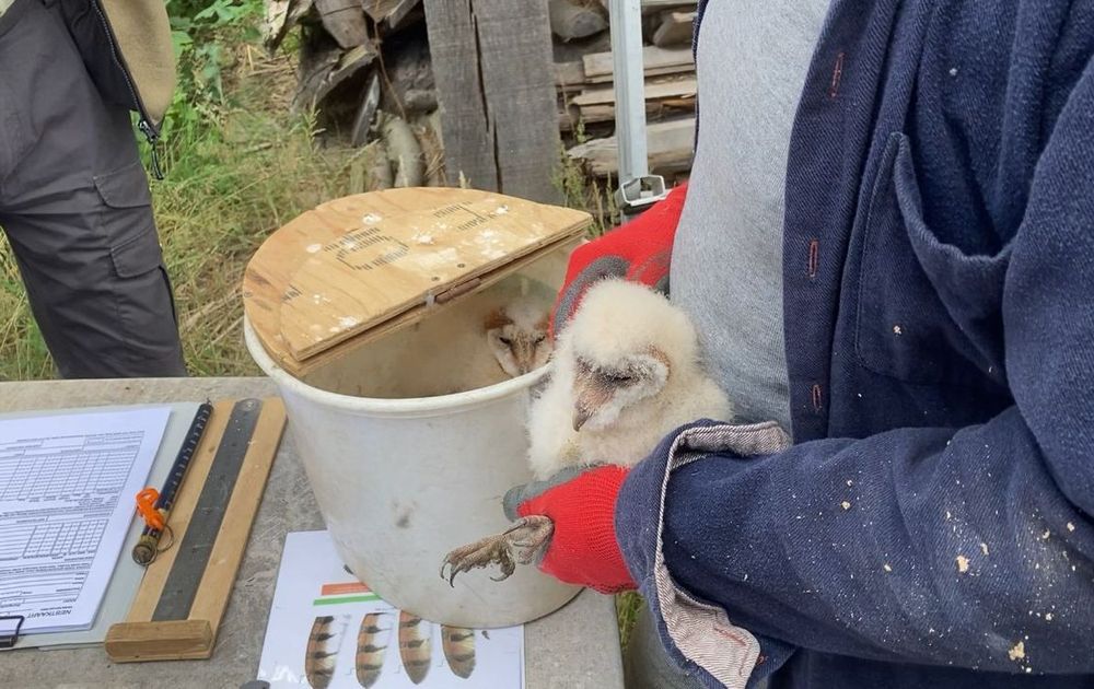 De kerkuil-kuikens zijn vandaag geringd