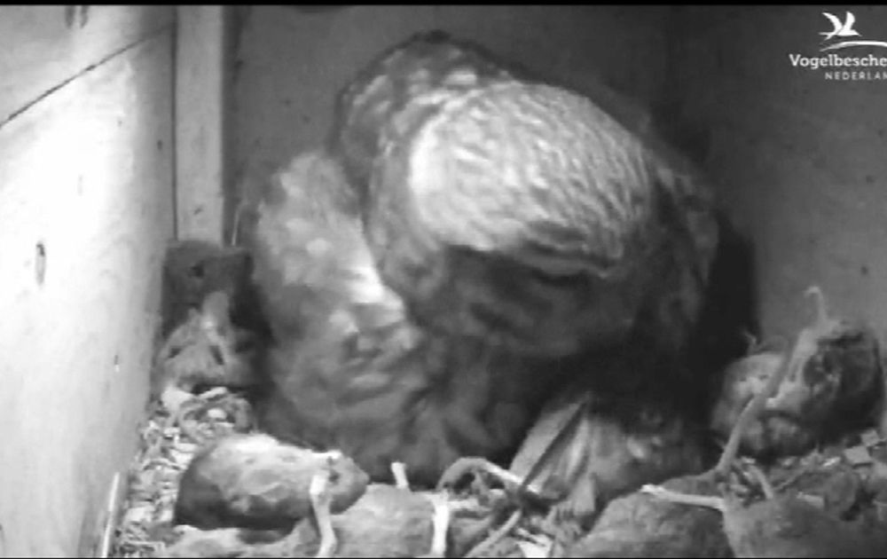 In de samenvatting staan weinig beelden uit de nestkast. Er was in de kast tijdens de broedtijd vaak erg slecht licht (en zicht).