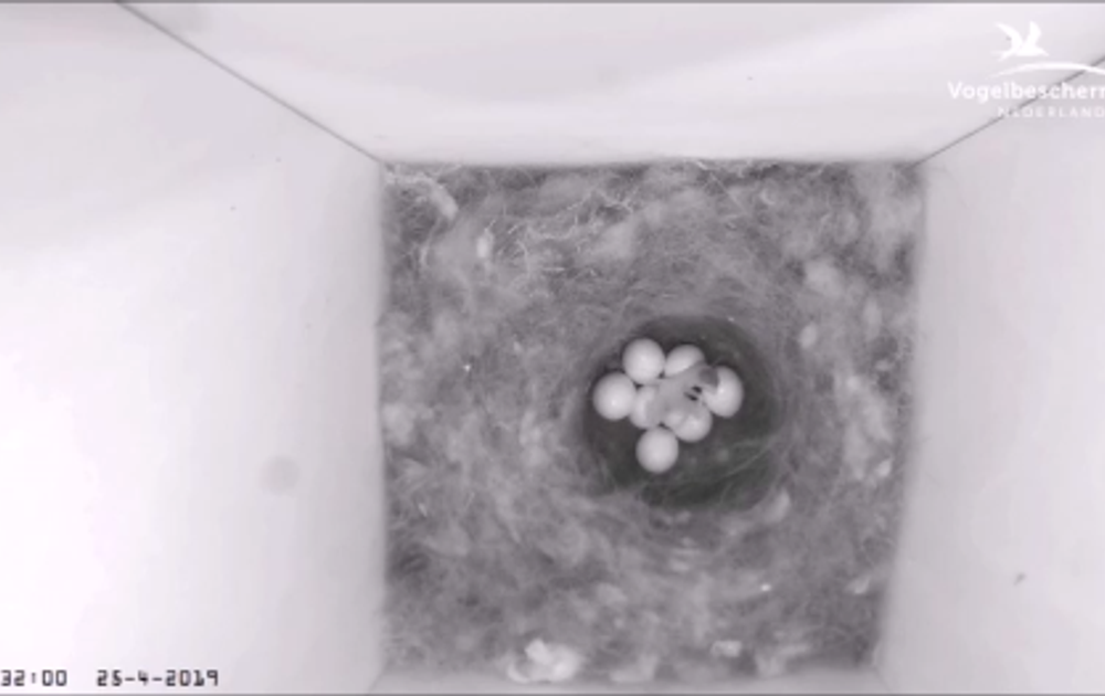 Het koolmees-nestje in de spreeuwenkast was ook een groot succes. Acht eieren en allen uitgevlogen