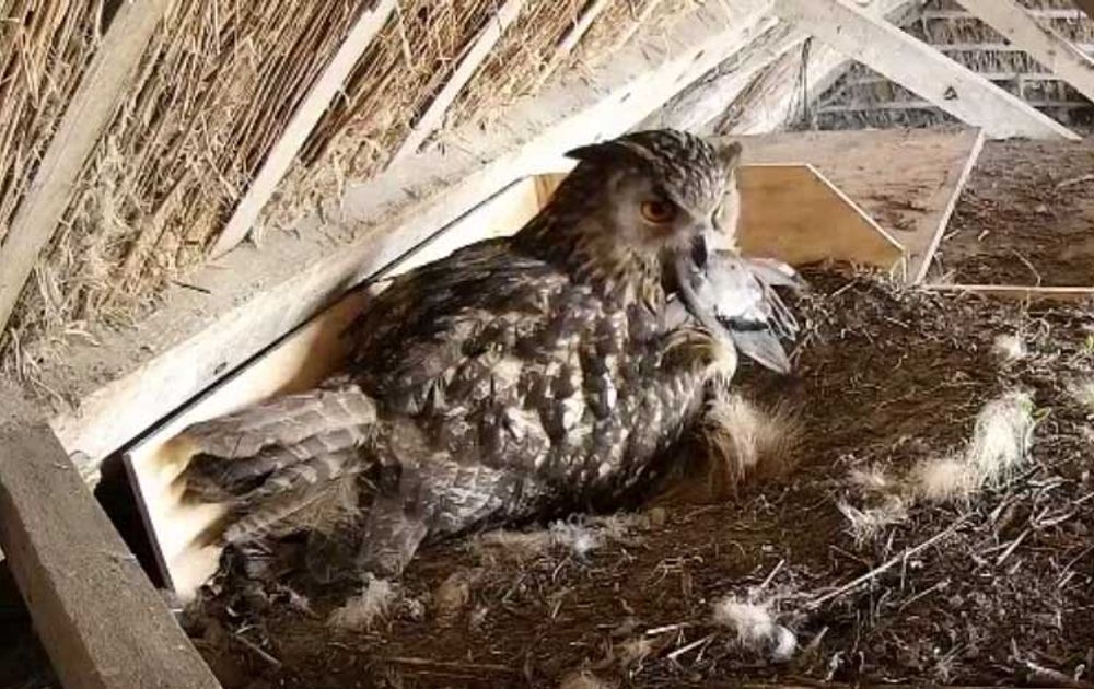 Zo denkt vrouw Oehoe op deze warme dag er ook over. Over een paar daagjes komt hopelijk het eerste kuiken. Die wil je wel ontvangen in een schoon huis.
