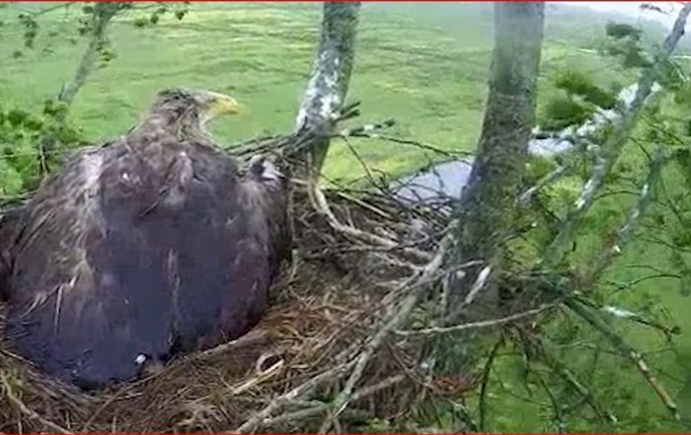 Slecht weer voor de zeearenden op het nest. Miserabel nat word je en voor je het weet waai je bijna van het nest...