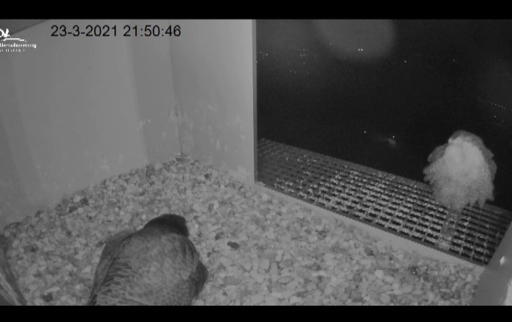 Het grotere, sterkere vrouwtje op de uitkijk, en man op de eitjes. Ongeveer half 1 hebben ze weer geruild.