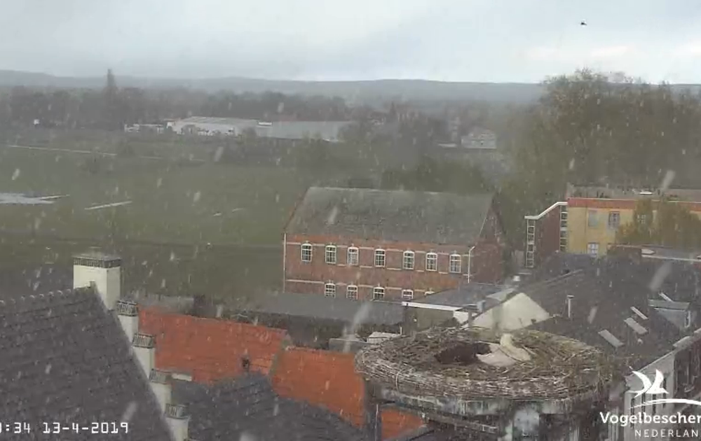 Onze Ooievaars moeten vele weerstypen ondergaan. Het ene moment is het tegen de 20 graden, het volgende moment zitten ze op het nest in de sneeuw.