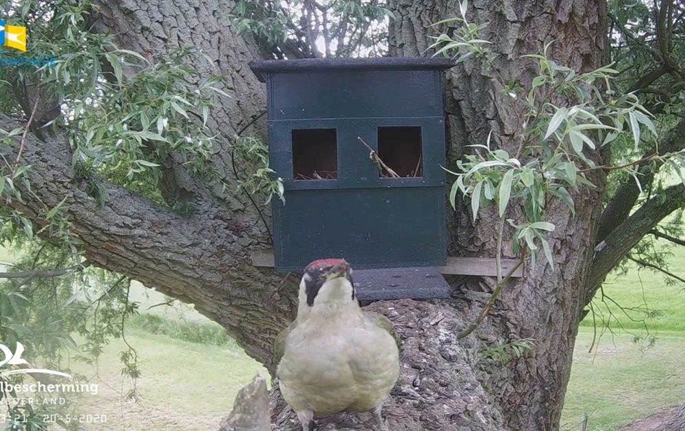 Wederom de Groene Specht (V) en een Grote Bonte Specht (jong?)